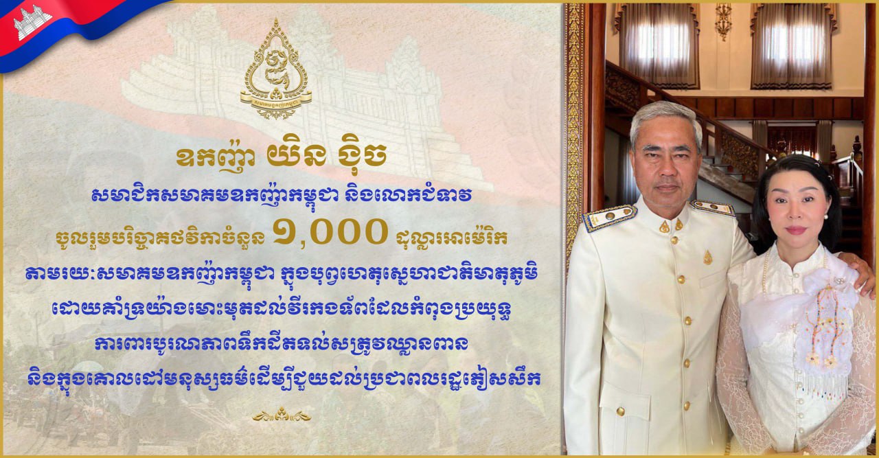 ឧកញ៉ា យិន ង៉ិច និងលោកជំទាវ ចូលរួមបរិច្ចាគថវិកា ១,០០០ដុល្លារ តាមរយៈសមាគមឧកញ៉ាកម្ពុជា គាំទ្រយ៉ាងមោះមុតដល់វីរកងទ័ពជួរមុខ