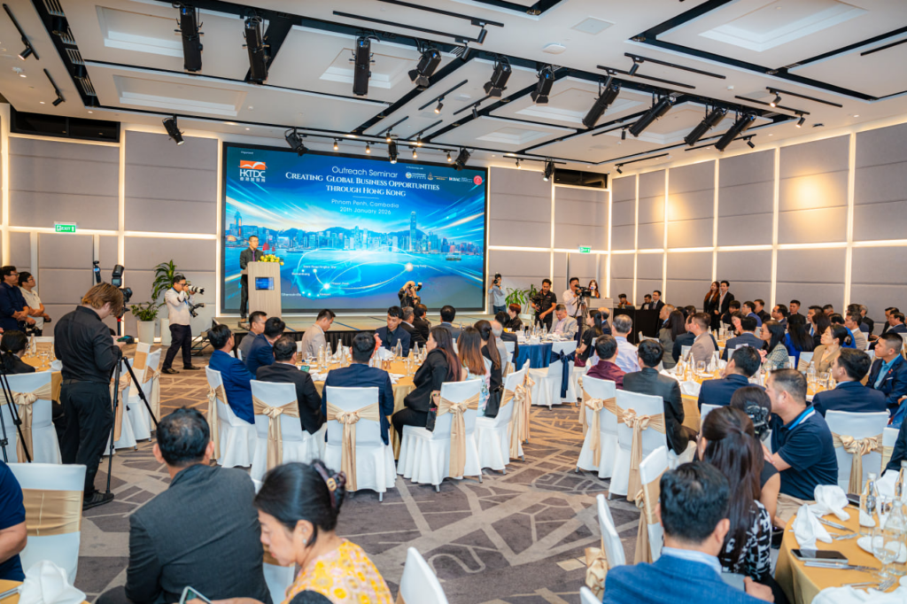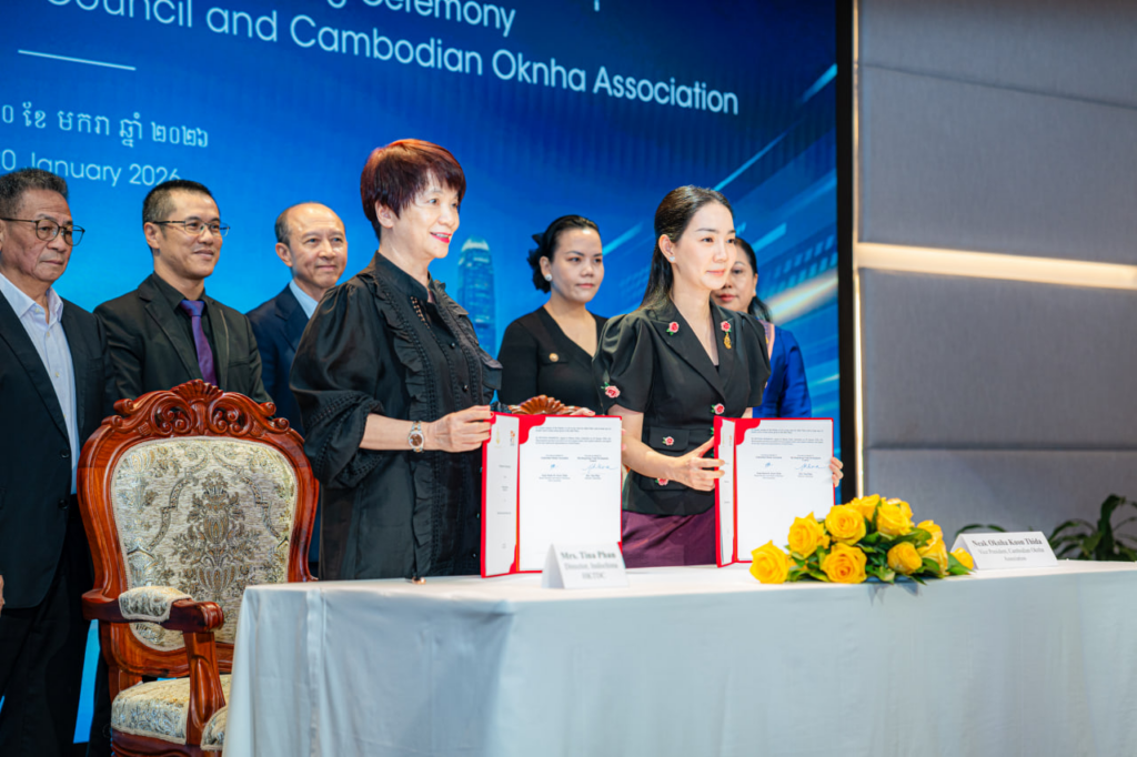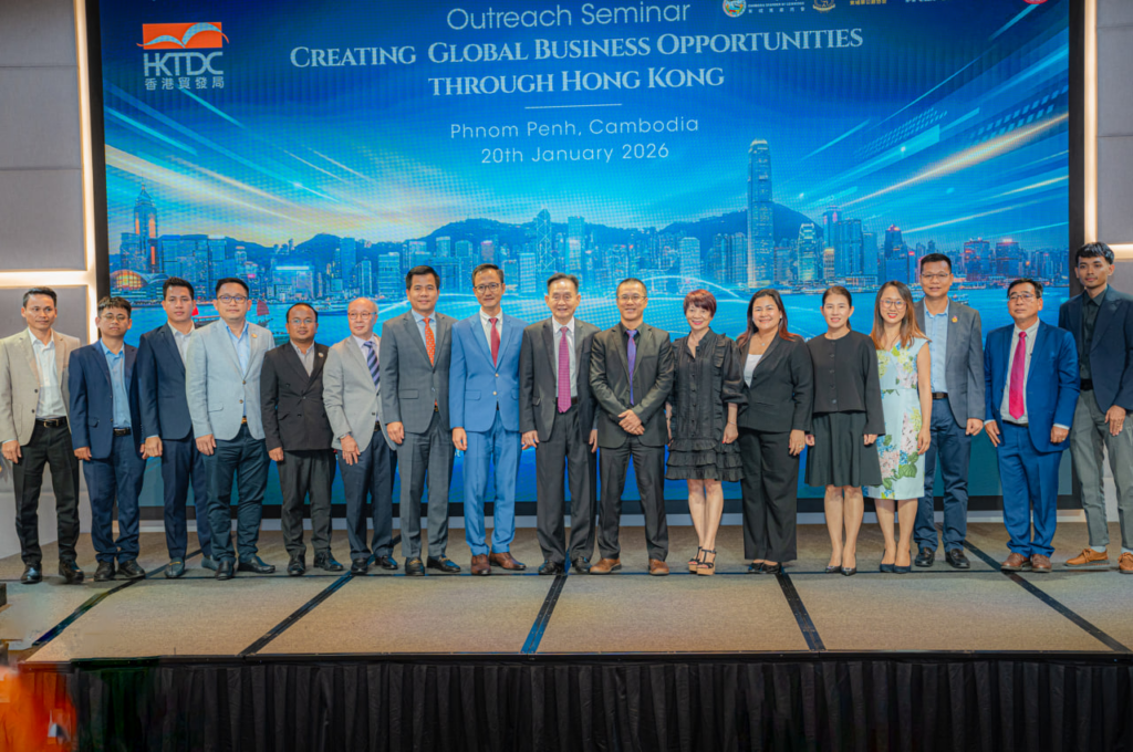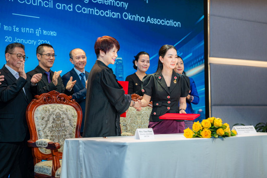 នាថ្ងៃអង្គារ ទី២០ ខែមករា ឆ្នាំ២០២៦ សមាគមឧកញ៉ាកម្ពុជា និងក្រុមប្រឹក្សាអភិវឌ្ឍន៍ពាណិជ្ជកម្មហុងកុង បានសហការរៀបចំ «សិក្ខាសាលាស្ដីពីការបង្កើតកាលានុវត្តភាពធុរកិច្ចសកល តាមរយៈហុងកុង» ក្នុងគោលបំណងផ្សព្វផ្សាយ និងលើកកម្ពស់បរិយាកាសធុរកិច្ច និងវិនិយោគនៅកម្ពុជា និងហុងកុង ព្រមទាំងពង្រឹងទំនាក់ទំនង និងការផ្លាស់ប្ដូរសកម្មភាពពាណិជ្ជកម្មឱ្យកាន់តែល្អប្រសើរមួយកម្រិតថែមទៀត។