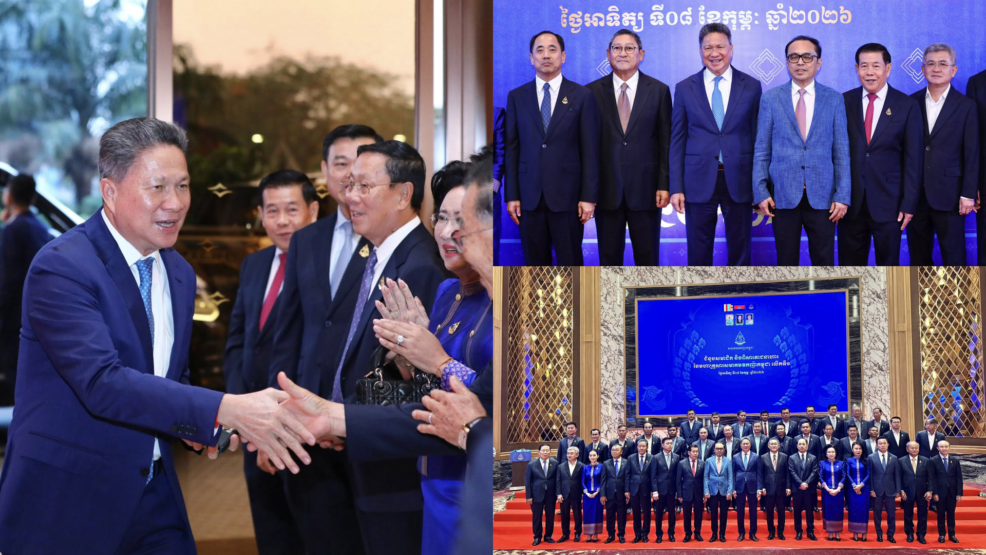 ឯកឧត្តម ស៊ុន ចាន់ថុល ឧបនាយករដ្ឋមន្ត្រី អនុប្រធានទី១ក្រុមប្រឹក្សាអភិវឌ្ឍន៍កម្ពុជា, ឯកឧត្តម សុខ ចិន្តាសោភា ឧបនាយករដ្ឋមន្រ្តី, ឯកឧត្តម វង្សី វិស្សុត ឧបនាយករដ្ឋមន្ត្រី រដ្ឋមន្ត្រីទទួលបន្ទុកទីស្តីការគណៈរដ្ឋមន្ត្រី បានអញ្ជើញចូលរួមជាអធិបតីក្នុងកម្មវិធី «ជំនួបសមាជិក និងពិសារភោជនាហារ នៃមហាគ្រួសារសមាគមឧកញ៉ាកម្ពុជា លើកទី១» នាថ្ងៃអាទិត្យ ទី០៨ ខែកុម្ភៈ ឆ្នាំ២០២៦ នៅសណ្ឋាគារ Shangri-La Phnom Penh។