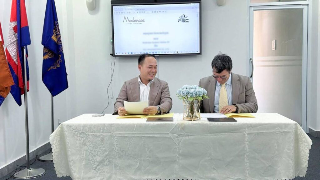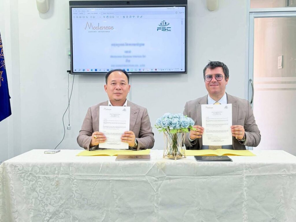 សូមបញ្ជាក់ថា ក្រុមហ៊ុន FSC.KH Co., Ltd ដែលជាក្រុមហ៊ុនបុត្រសម្ព័ន្ធរបស់ FSC Group នៃព្រះរាជាណាចក្រកម្ពុជា និងក្រុមហ៊ុន Modenese Gastone Interiors Srl បានបង្កើតក្របខណ្ឌកិច្ចសហប្រតិបត្តិការយុទ្ធសាស្ត្រក្នុងវិស័យរចនាផ្ទៃខាងក្នុង និងគ្រឿងសង្ហារឹមបែបប្រណីតស្តង់ដារអន្តរជាតិ។