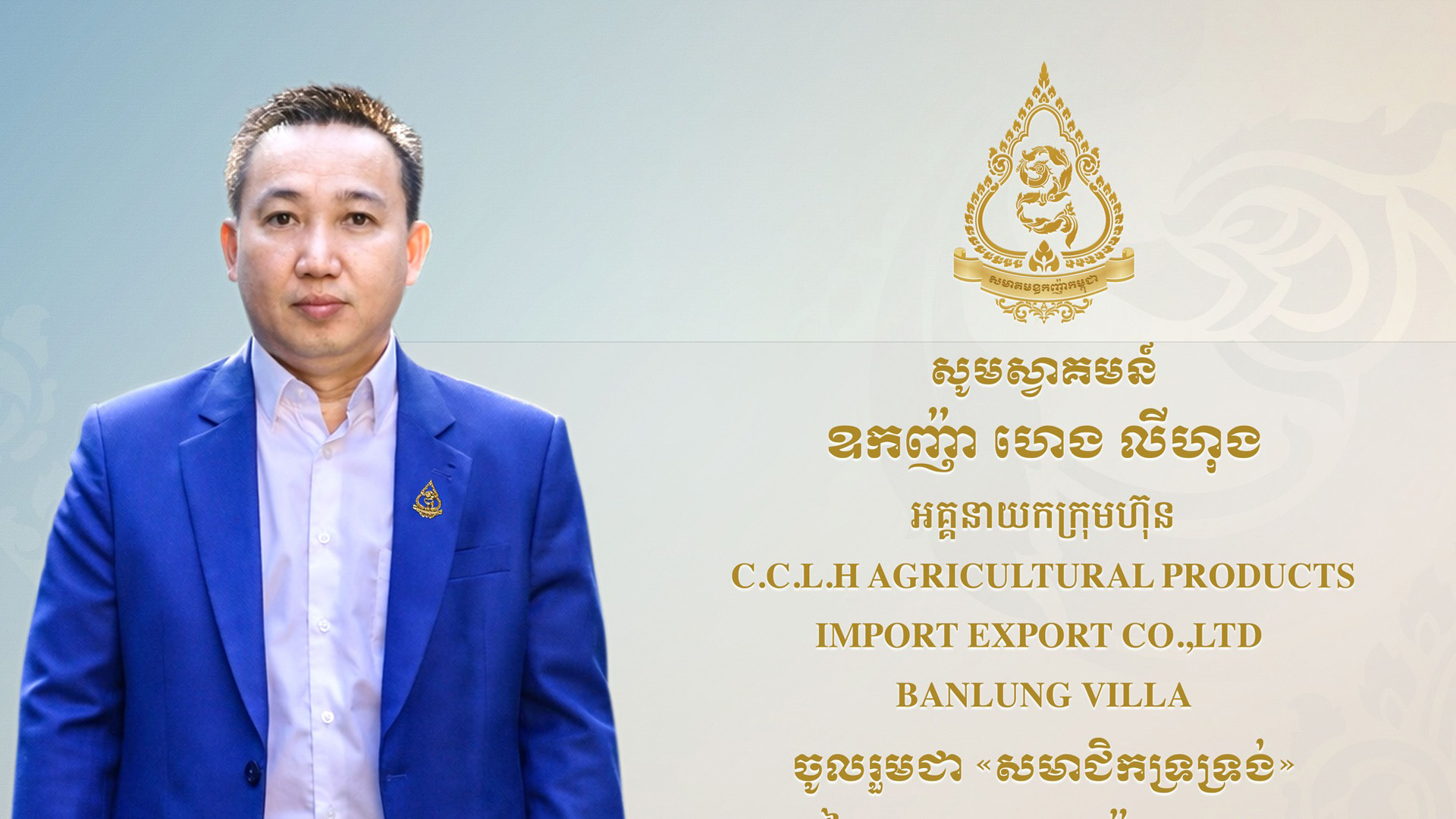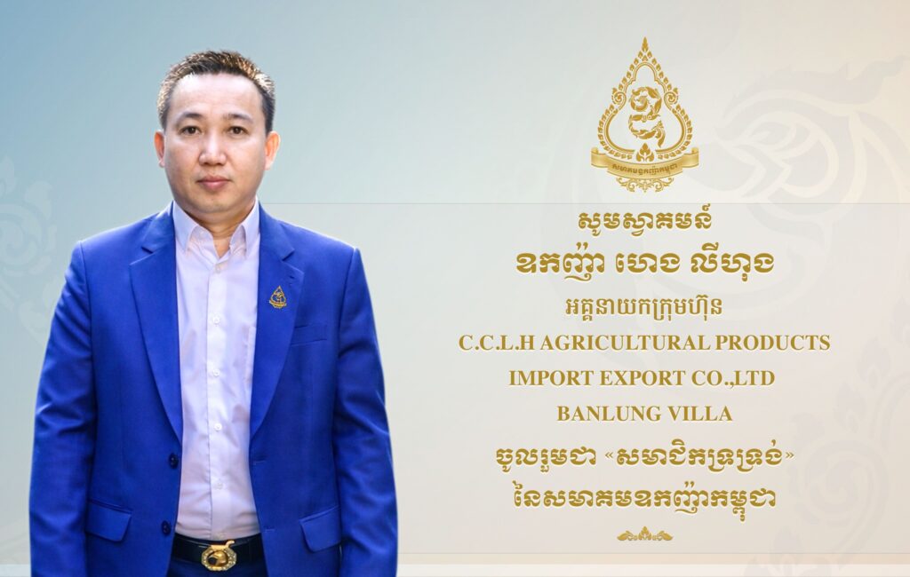 ឧកញ៉ា ហេង លីហុង អគ្គនាយកក្រុមហ៊ុន C.C.L.H AGRICULTURAL PRODUCTS IMPORT EXPORT CO.,LTD និង BANLUNG VILLA ចូលរួមជា «សមាជិកទ្រទ្រង់» នៃសមាគមឧកញ៉ាកម្ពុជា។ នេះបើតាមការប្រកាសរបស់សមាគមឧកញ៉ាកម្ពុជា នៅថ្ងៃទី៨ ខែមេសា ឆ្នាំ២០២៦។