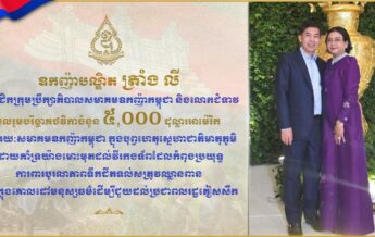 ឧកញ៉ាបណ្ឌិត ត្រាំង លី និងលោកជំទាវ ចូលរួមបរិច្ចាគថវិកា ៥,០០០ដុល្លារ តាមរយៈសមាគមឧកញ៉ាកម្ពុជា គាំទ្រយ៉ាងមោះមុតដល់វីរកងទ័ពជួរមុខ