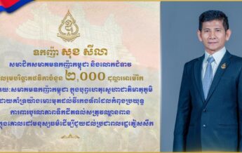 ឧកញ៉ា សុខ សីលា និងលោកជំទាវ ចូលរួមបរិច្ចាគថវិកា ២,០០០ដុល្លារ តាមរយៈសមាគមឧកញ៉ាកម្ពុជា គាំទ្រយ៉ាងមោះមុតដល់វីរកងទ័ពជួរមុខ