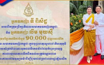 អ្នកឧកញ៉ា ទី ពិសិដ្ឋ និងលោកជំទាវអ្នកឧកញ៉ា លីម មុយសុឺ ចូលរួមបរិច្ចាគថវិកា ១០,០០០ដុល្លារ តាមរយៈសមាគមឧកញ៉ាកម្ពុជា គាំទ្រយ៉ាងមោះមុតដល់វីរកងទ័ពជួរមុខ