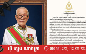 សមាគមឧកញ៉ាកម្ពុជា ផ្ញើសារលិខិតរំលែកមរណទុក្ខ ជូនលោកជំទាវឧកញ៉ា ថាយ វ៉ា ចំពោះមរណភាពសម្តេចចៅហ្វាវាំង វរវៀងជ័យ អធិបតីស្រឹង្គារ គង់ សំអុល