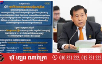 ឧកញ៉ា ឡេង ស្រ៊ួយហ៊ាំង សមាជិកសមាគមឧកញ៉ាកម្ពុជា ចូលរួមបរិច្ចាគថវិកា ១០០០ដុល្លារ ដល់ «មូលនិធិកសាងហេដ្ឋារចនាសម្ព័ន្ធតាមព្រំដែន»