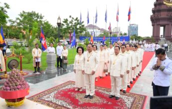 លោកអ្នកឧកញ៉ា លី យ៉ុងផាត់ ដឹកនាំគណៈប្រតិភូសមាគមឧកញ៉ាកម្ពុជា អញ្ជើញដាក់ក្រពុំបិណ្ឌផ្កាឈូកគោរពរដ្ឋធម្មនុញ្ញ ក្នុងឱកាសខួបលើកទី៣២ ទិវាប្រកាសរដ្ឋធម្មនុញ្ញ