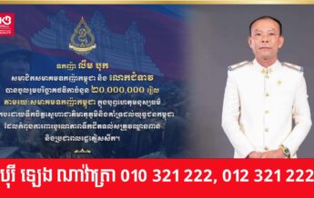 ឧកញ៉ា លឹម បុក និងលោកជំទាវ ចូលរួមបរិច្ចាគថវិកាចំនួន ២០,០០០,០០០ រៀល ដល់កងទ័ពជួរមុខ ដែលកំពុងឈរជើងការពារបូរណភាពទឹកដីកម្ពុជា