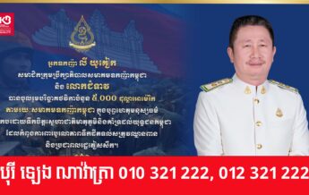 អ្នកឧកញ៉ា លី សុភ័ក្ត និងលោកជំទាវ ចូលរួមឧបត្ថម្ភថវិកា ៥,០០០ ដុល្លារអាម៉េរិក ដល់កងទ័ពជួរមុខ ដែលកំពុងឈរជើងការពារបូរណភាពទឹកដីកម្ពុជា
