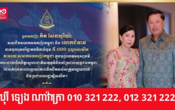 អ្នកឧកញ៉ា ហេង បូរិន និងលោកជំទាវ ចូលរួមបរិច្ចាគថវិកា ២,០០០ ដុល្លារអាម៉េរិក ដល់កងទ័ពជួរមុខ ដែលកំពុងឈរជើងការពារបូរណភាពទឹកដីកម្ពុជា