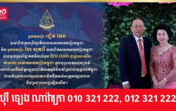 អ្នកឧកញ៉ា ជៀម ផែន និងអ្នកឧកញ៉ា ហៃ សុភារី ចូលរួមឧបត្ថម្ភថវិកា ២០,០០០ ដុល្លារអាម៉េរិក ដល់កងទ័ពជួរមុខ ដែលកំពុងឈរជើងការពារបូរណភាពទឹកដីកម្ពុជា