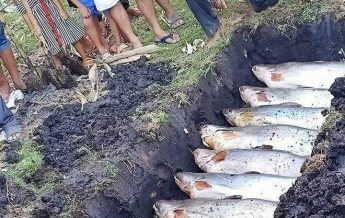 ត្រីប្រាជាច្រើនក្បាលនៅកស្សិណ្ធុប្រាសាទបាគង ងាប់ដោយសារខ្វះទឹក