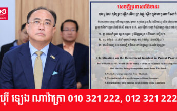 ក្រុមហ៊ុន រ៉ូយ៉ាល់ រេលវេ អ្នកឧកញ៉ា គិត ម៉េង បកស្រាយរឿងឧបទ្ទវហេតុខ្សែរថភ្លើងរអិលធ្លាក់ផ្លូវ នៅខេត្តពោធិ៍សាត់ ដែលមតិខ្លះចោទថាដឹកប្រេងឥន្ធនៈពីប្រទេសថៃ
