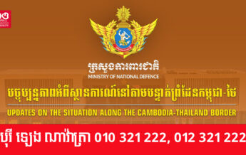ក្រសួងការពារជាតិ បង្ហាញបច្ចុប្បន្នភាពអំពីស្ថានការណ៍នៅតាមបន្ទាត់ព្រំដែនកម្ពុជា-ថៃ ពាក់ព័ន្ធករណីកងកម្លាំងយោធាថៃបន្តបាញ់ប្រហារ និងឈ្លានពានមកលើដែនអធិបតេយ្យកម្ពុជា