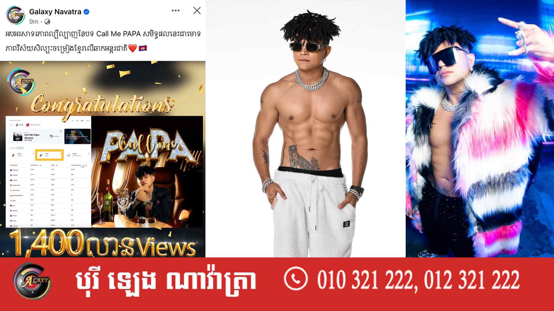 អបអរសាទរបទចម្រៀង « Call Me PaPa » របស់កំពូលតារាចម្រៀងឧកញ៉ា ខេមរៈ សិរីមន្ត មិនត្រឹមតែល្បីល្បាញនៅក្នុងប្រទេសប៉ុណ្ណោះទេ ពេលនេះបទចម្រៀង « Call Me PaPa » បានល្បីល្បាញជុំវិញពិភពលោក ជាក់ស្តែងនៅលើបណ្តាញសង្គម Tik Tok មានអ្នកចូលទស្សនារហូតដល់ទៅ 1400លានដងនៅជុំវិញពិភពលោក។នេះបើតាមការបង្ហាញលើផេកផ្លូវការរបស់ផលិតកម្ម Galaxy Navatra។