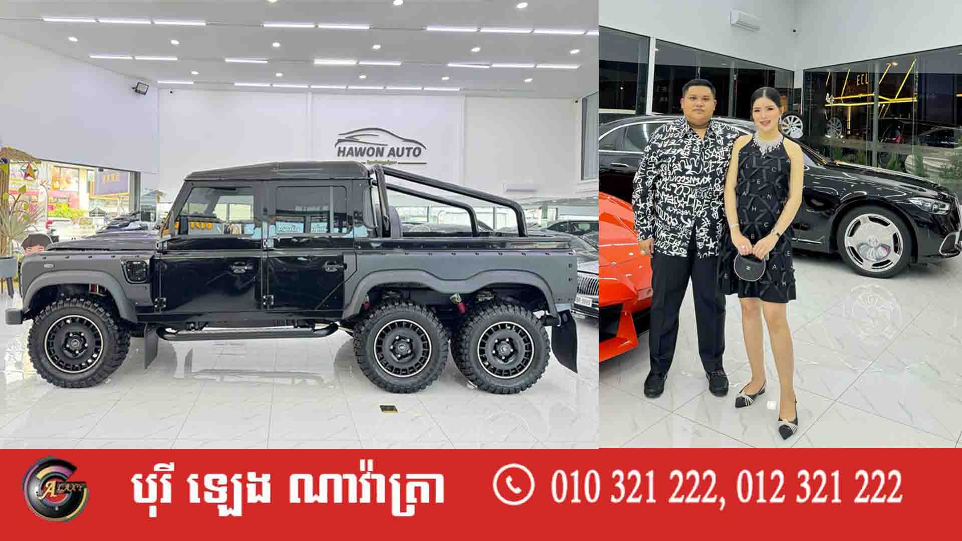 កំពូលរថយន្ត Defender កង់ ៦ ម៉ូដែល 6X6 Original CHELSEA ដ៏អំណាច ជាប់ឈ្មោះជាស្ដេចរថយន្ត Off-road ដ៏មានអានុភាពលេចធ្លោលើពិភពលោក និងមានតែមួយគ្រឿងគត់នៅស្រុកខ្មែរ កំពុងតាំងលក់នៅហាងរថយន្តប្រណីត Hawon Auto Car របស់ អ្នកឧកញ៉ា ឈួន ហាវ៉ុន ។