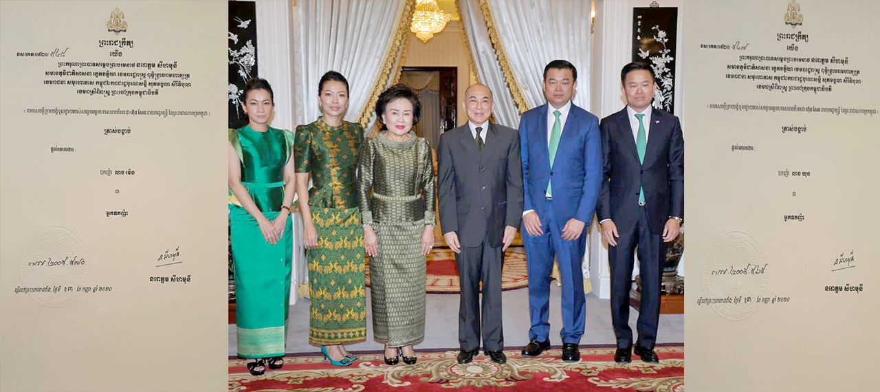 ព្រះករុណា ព្រះបាទ សម្តេច ព្រះបរមនាថ នរោត្តម សីហមុនី ព្រះមហាក្សត្រ នៃកម្ពុជា បានចេញព្រះរាជក្រឹត្យ ត្រាស់បង្គាប់ផ្តល់គោរមជូនលោកជំទាវឧកញ៉ា ភាព ហៀក, ឧកញ៉ា លាង ឃុន, ឧកញ៉ា លាង ម៉េង ជា «អ្នកឧកញ៉ា»។