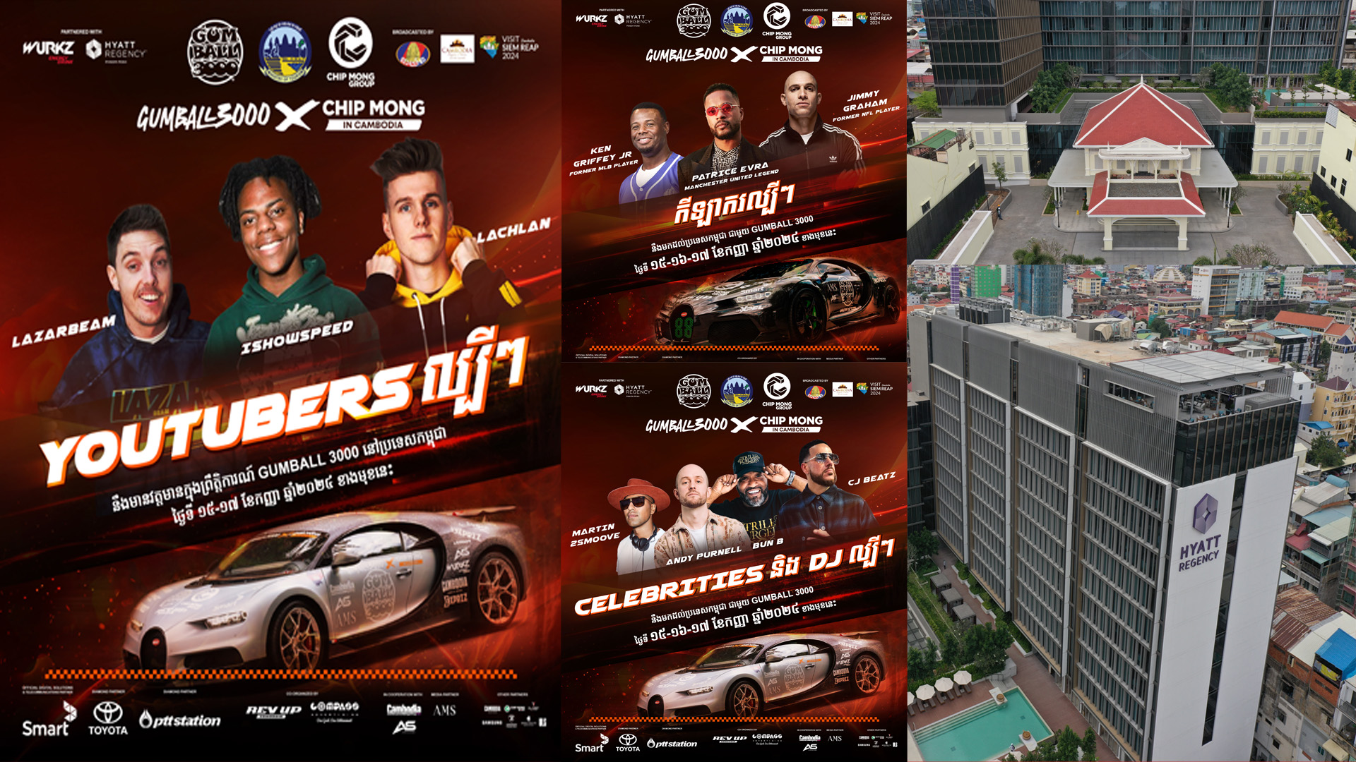 ប្រតិភូ Gumball 3000 ដែលជាក្រុមកំពូលតារាអន្តរជាតិល្បីៗ កីឡាករ,YouTubers និងជនមានឥទ្ធិពលជុំវិញពិភពលោក នឹងប្រមូលផ្ដុំគ្នាស្នាក់នៅសណ្ឋាគារ ហៃយ៉ាត់ រីជេនស៊ី ភ្នំពេញ