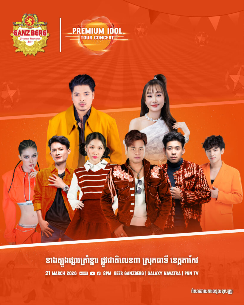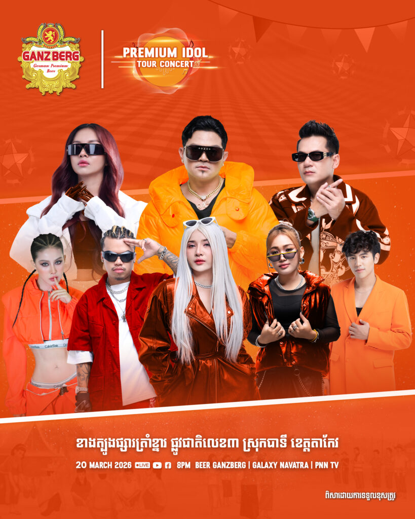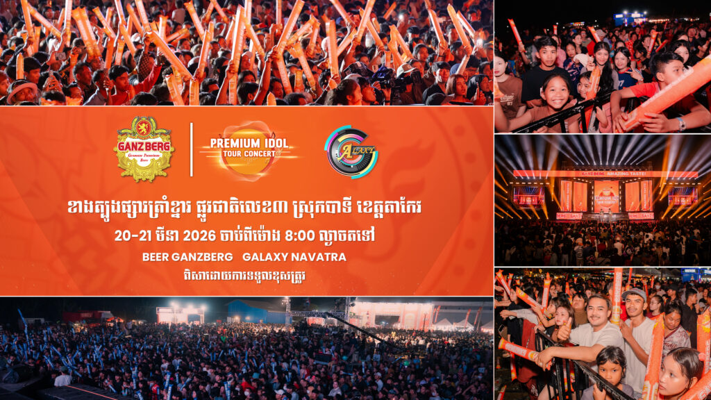 ក្រេបរសជាតិស្រាបៀរ GANZBERG ដែលឈ្ងុយឆ្ងាញ់កម្រិតពិភពលោក នៅក្នុងព្រឹត្តិការណ៍ប្រគំតន្រ្តី GANZBERG PREMIUM IDOL TOUR CONCERT ។ តារាចម្រៀងល្បីៗជាច្រើនរូបប្រចាំនៅក្នុងផលិតកម្ម ហ្គាឡាក់ស៊ី ណាវ៉ាត្រា បានត្រៀមខ្លួនរួចរាល់ហើយ ដើម្បីសម្តែងនិងច្រៀងជូនបងប្អូនអ្នកទស្សនា និងរាំលេងកម្សាន្តជុំគ្នានៅចុងសប្តាហ៍។