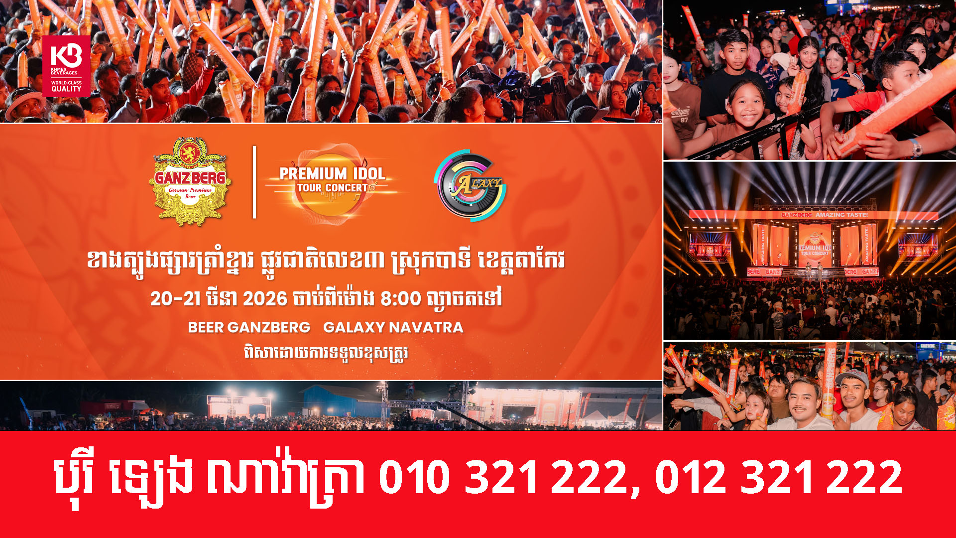 បងប្អូនអ្នកខេត្ត តាកែវ រង់ចាំយូរហើយមែនទេ ? ពេលនេះការប្រគំតន្រ្តី GANZBERG PREMIUM IDOL TOUR CONCERT បានធ្វើដំណើរទៅដល់ស្រុកបាទី ខេត្តតាកែវ ហើយ សូមបងប្អូនទាំងអស់រង់ចាំទទួលផង Idol ទាំងអស់ត្រៀមកាដូពិសេសជាច្រើនដើម្បីចែកជូនបងប្អូន ជាក់ស្តែងនៅថ្ងៃទី ២០ ខែ មីនា ឆ្នាំ ២០២៦ ជួបជាមួយកំពូលតារាចម្រៀងល្បីៗដូចជា ឧកញ៉ា ខេមរៈ សិរីមន្ត , កញ្ញា តន់ ចន្ទសីម៉ា ,លោក ខាន់ ជេមស៌ និងកញ្ញា ហ៊ិន លីដា ព្រមទាំងតារាចម្រៀងវ័យក្មេងជាច្រើនរូប ។ ដោយឡែកនៅថ្ងៃទី ២១ ខែ មីនា ឆ្នាំ ២០២៦ ជួបជាមួយតារាចម្រៀងវ័យក្មេងល្បីៗដូចជាលោក គូម៉ា កញ្ញា អុីវ៉ា និងតារាចម្រៀងជាច្រើនរូបទៀត ។