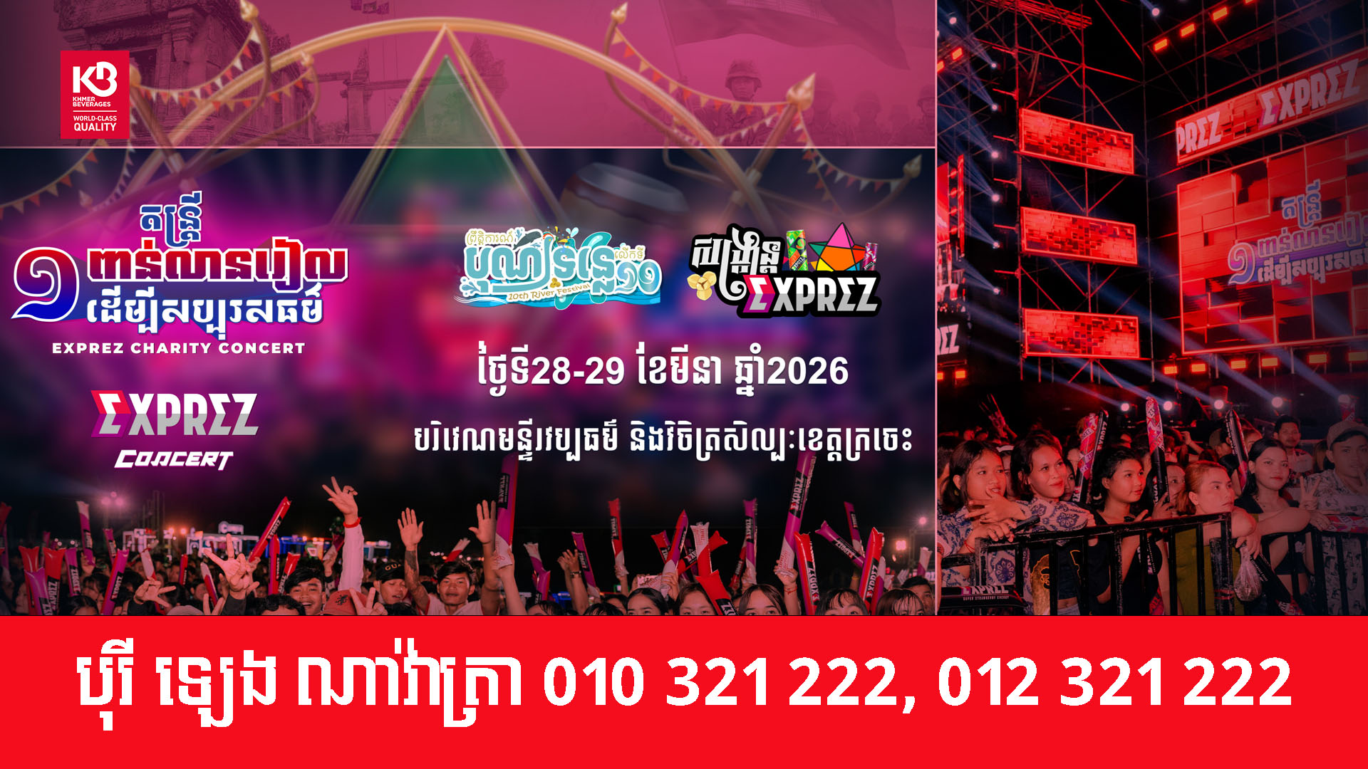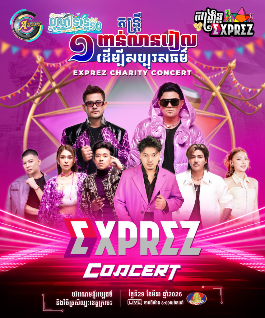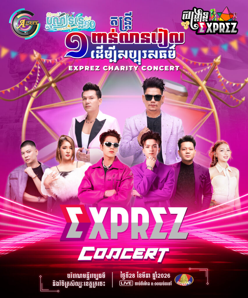 នៅចុងសប្តាហ៍នេះព្រឹត្តិការណ៍ប្រគំតន្រ្តី EXPREZ CHARITY CONCERT នឹងជួបបងប្អូននៅមន្ទីរវប្បធម៌ និងវិចិត្រសិល្បៈ ខេត្តក្រចេះ ចំនួន២ថ្ងៃ ចាប់ពីថ្ងៃទី ២៨-២៩ មីនា ឆ្នាំ២០២៦នេះ។