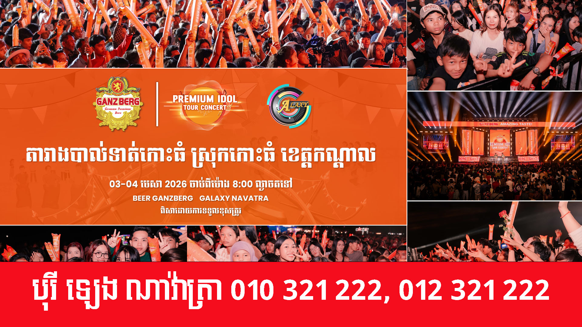កៀកថ្ងៃចូលឆ្នាំថ្មីប្រពៃណីខ្មែរហើយ ព្រឹត្តិការណ៍ប្រគំន្រ្តី GANZBERG PREMIUM IDOL TOUR CONCERT ត្រៀមនឹងចុះទៅ Surprise បងប្អូនអ្នកកោះធំ ខេត្តកណ្តាល មុនគេដើម្បីអបអរបុណ្យចូលឆ្នាំថ្មីប្រពៃណីខ្មែរ បើមិនបានចូលរួម ប្រយ័ត្នស្តាយក្រោយ ពីព្រោះកំពូលតារាចម្រៀងល្បីៗបានត្រៀមនូវបទចម្រៀងថ្មីៗជាច្រើនដើម្បីសម្តែង និងច្រៀងឱ្យរង្គើឆាក GANZBERG ។ ជាក់ស្តែងនៅថ្ងៃទី០៣ ខែ មេសា ឆ្នាំ ២០២៦ ជួបជាមួយកំពូលតារាចម្រៀងល្បីៗប្រចាំនៅក្នុងផលិតកម្ម ហ្គាឡាក់ស៊ី ណាវ៉ាត្រា ដូចជាលោក ព្រាប សុវត្ថិ , ខេម , ខាន់ ជេមស៌ , កញ៉ា ហ៊ិន លីដា និងកញ្ញា អែមមី ព្រមទាំងតារាចម្រៀងជាច្រើនរូបទៀត ។ ចំណែកនៅថ្ងៃទី ០៤ ខែ មេសា ឆ្នាំ ២០២៦ ឯណោះវិញ ជួបជាមួយលោក គូម៉ា , Tempo កញ្ញា ខាត់ សួស្តី ព្រមទាំងតារាចម្រៀងវ័យក្មេងសំឡេងពីរោះជាច្រើនរួប នឹងត្រៀមនឹងមកអង្រួញឆាកតន្រ្តី GANZBERG PREMIUM IDOL TOUR CONCERT ឱ្យក្រើកមេឃរញ្ជួយដីម្តងជាមួយនិងបទចម្រៀងប្រពៃណីត្រៀមស្វាគមន៍ឆ្នាំថ្មី ។