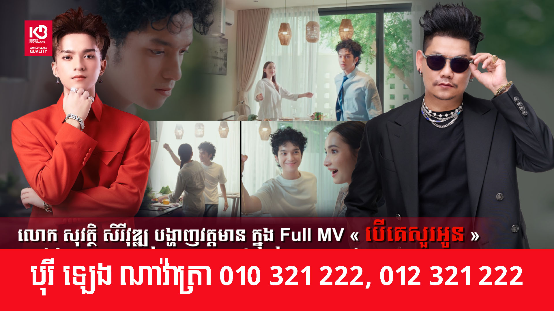 ក្រោយទន្ទឹងរង់ចាំអស់ពេលយ៉ាងយូរ ទីបំផុត Full MV ចម្រៀង « បើគេសួរអូន » របស់កំពូលតារាចម្រៀងឧកញ៉ា ព្រាប សុវត្ថិ ត្រៀមនឹងចេញជាផ្លូវការនាពេលឆាប់ៗខាងមុខនេះហើយ ហើយអ្វីដែលកាន់តែពិសេសនោះ គឺអ្នកដឹកនាំបានជ្រើសរើសលោក សុវត្ថិ សិរីវុឌ្ឍ ដែលជាកូនប្រុសពៅកំពូលតារាចម្រៀងលោកឧកញ៉ា ព្រាប សុវត្ថិ ឱ្យចូលរួមសម្តែងនៅក្នុង MV ចម្រៀងនេះផងដែរ ។