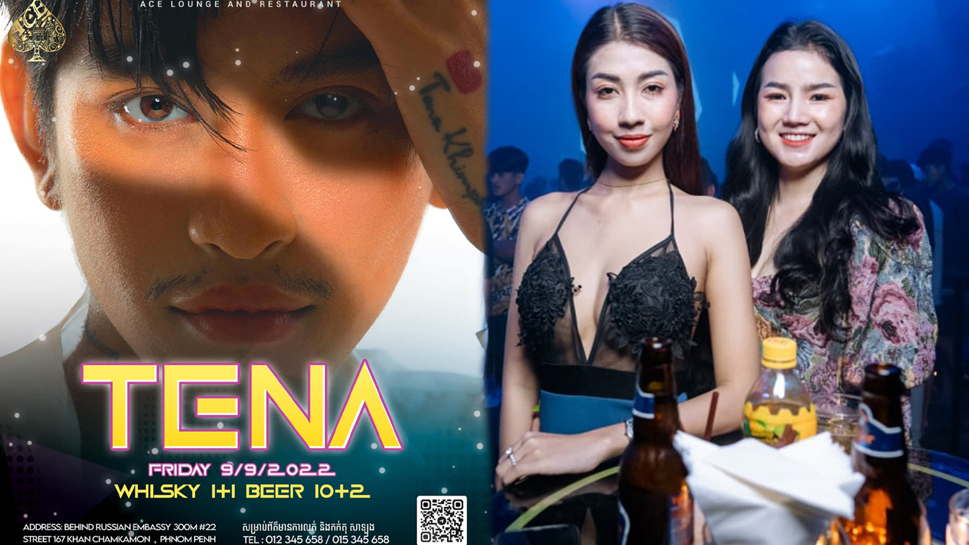 យប់ថ្ងៃសុក្រនេះ ភោជនីយដ្ឋាន ACE Lounge and Restaurant បានអញ្ជើញតារាកិត្តិយស Tena មកប្រគំតន្ត្រីកំដរអារម្មណ៍ភ្ញៀវដែលបានសម្រាកពីការនឿយហត់ពេញមួយសប្ដាហ៍។