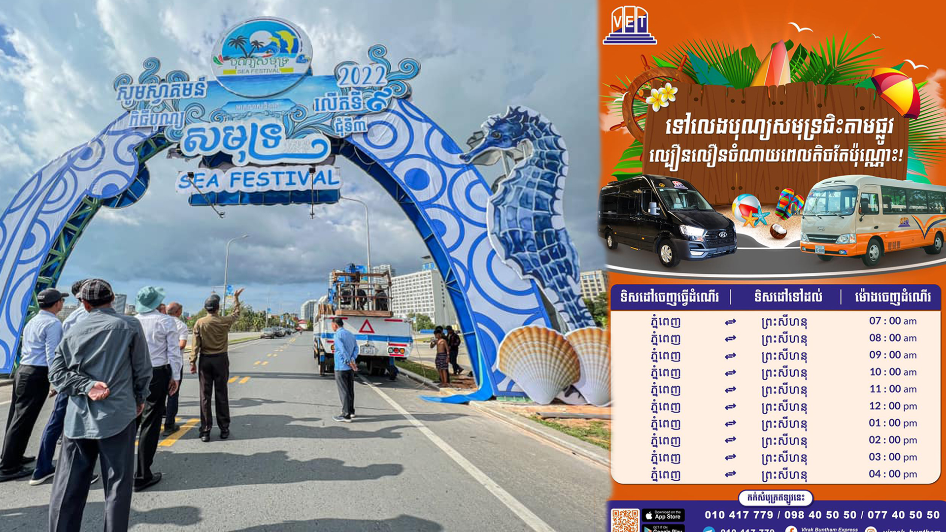 បុណ្យសមុទ្រលើកទី៩ ជុំទី៣ និងមហាសន្និបាតក្លឹបឆ្នេរសមុទ្រដែលស្អាតជាងគេលើសកលលោកឆ្នាំ២០២២ នៅខេត្តព្រះសីហនុ នឹងប្រព្រឹត្តធ្វើឡើងពីថ្ងៃទី ០៩ រហូតដល់ ១៤ ធ្នូ។