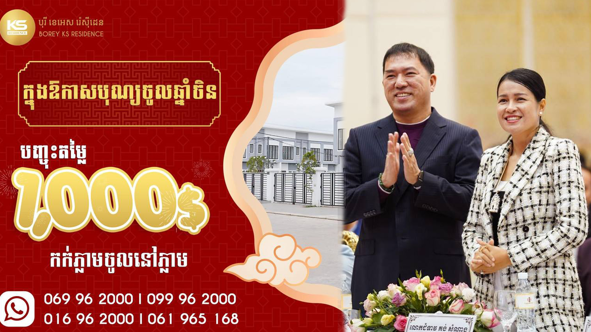 សម្រាប់ព័ត៌មានលម្អិតសូមអញ្ជើញទំនាក់ទំនងតាម Facebook: Borey KS Residence បុរី ខេអេស រ៉េស៊ីដេនឬទូរស័ព្ទទំនាក់ទំនង៖ 016 96 2000, 099 96 2000, 061 965 168, 061 22 6789 & 078 91 92 99 ទីតាំងនៅខាងក្រោយវត្តដូនសរ ៣០០ម ឬ១៨០០ម ពីផ្សារគគីរ និងផ្លូវជាតិលេខ១៕