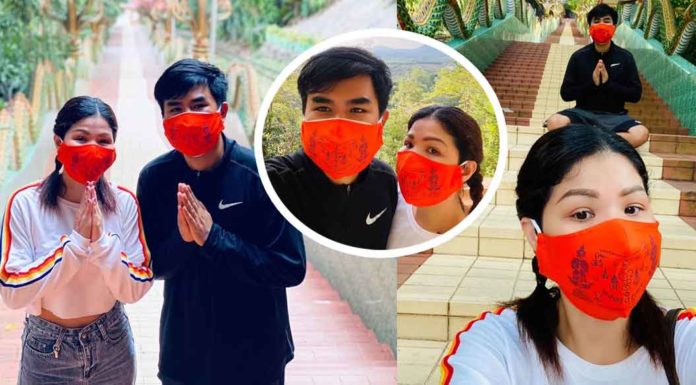 មាស សុខ​សោភា នឹង​ស្វាមី ពាក់​ម៉ាស ចារ សុទ្ធតែ​យ័ន្តការពារ​កូវីដ-១៩