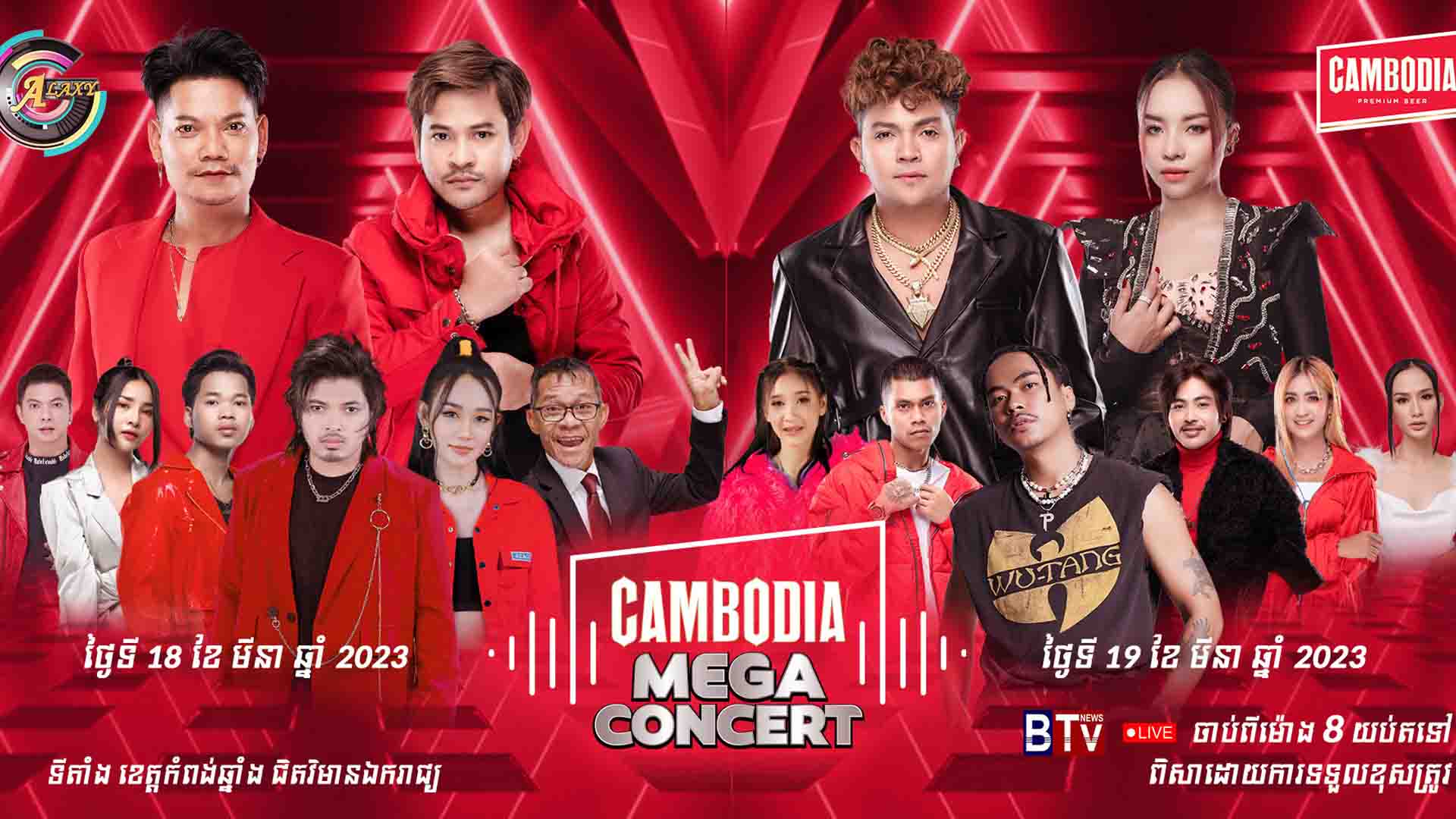 ផលិតកម្ម ហ្គាឡាក់ស៊ី ណាវ៉ាត្រា និងក្រុមហ៊ុនស្រាបៀរ CAMBODIA នឹងសហការគ្នានាំយកមកនូវការប្រគុំតន្រ្តីដ៏កក្រើក និងធំសម្បើមថ្មីមួយទៀត ជូនដល់បងប្អូនទស្សនិកជនក្នុងខេត្តកំពង់ឆ្នាំង គឺព្រឹត្តិការណ៍ប្រគុំតន្រ្តី CAMBODIA Mega Concert។