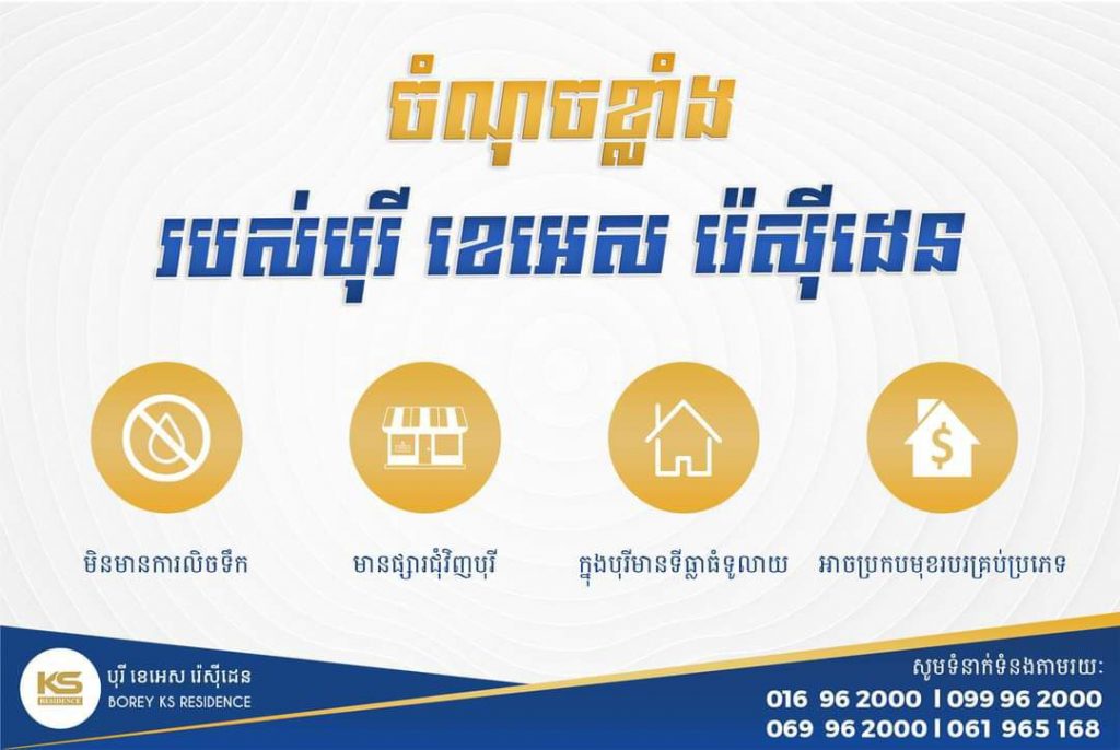 ឧកញ៉ាបណ្ឌិត គីម ហ៊ាង ម្ចាស់គម្រោងបុរី KS Residence ដែលមានទីតាំងនៅជិតរមណីយដ្ឋានកៀនស្វាយក្រៅ ផ្លូវជាតិលេខ ១ មានប្រសាសន៍ថា៖ “ក្នុងជំនួបពិភាក្សា និងសម្ដែងការគួរសម្យជាមួយ ឯកឧត្ដម រដ្ឋមន្ត្រីក្រសួងព័ត៌មាន ពិតជាបានផ្លែផ្កាមែនទែន! ជាពិសេសការឈានទៅរកកិច្ចសហការគ្នាក្នុងពេលខាងមុខឆាប់ៗ ក្នុងការលក់ផ្ទះក្នុង បុរី KS Residence ជូនបងប្អូនមន្ត្រីរាជការ ក្រសួងព័ត៌មាន ក្នុងតម្លៃដ៏ពិសេស និងផ្ដល់ជូននូវលក្ខខណ្ឌបង់ប្រាក់ប្រចាំខែ មានភាពបត់បែន ទៅតាមលទ្ធភាពជាក់ស្ដែងរបស់ពួកគាត់”។