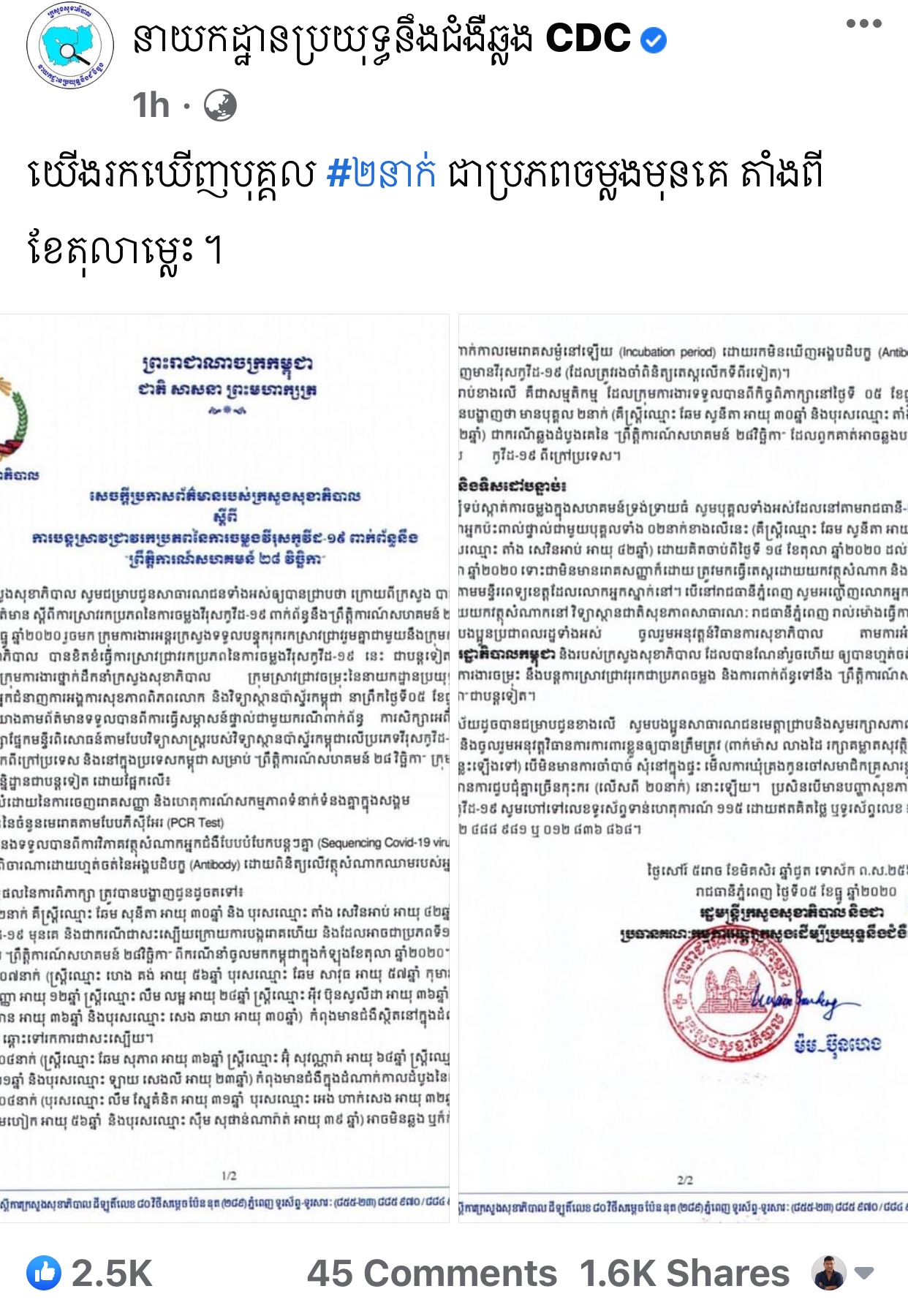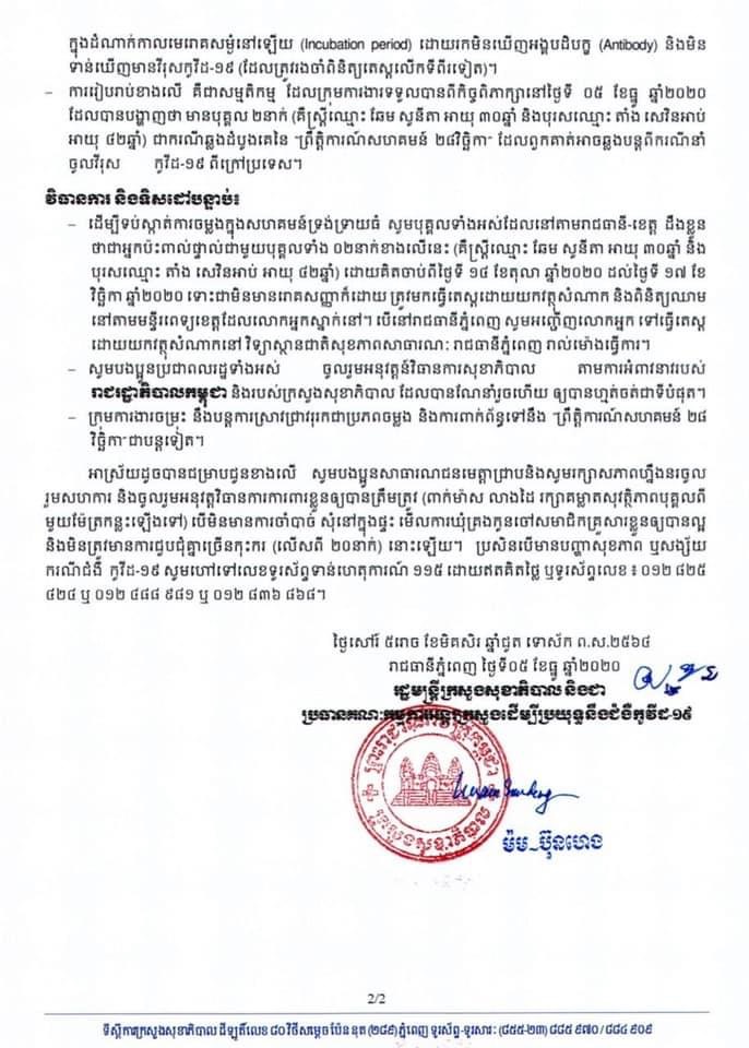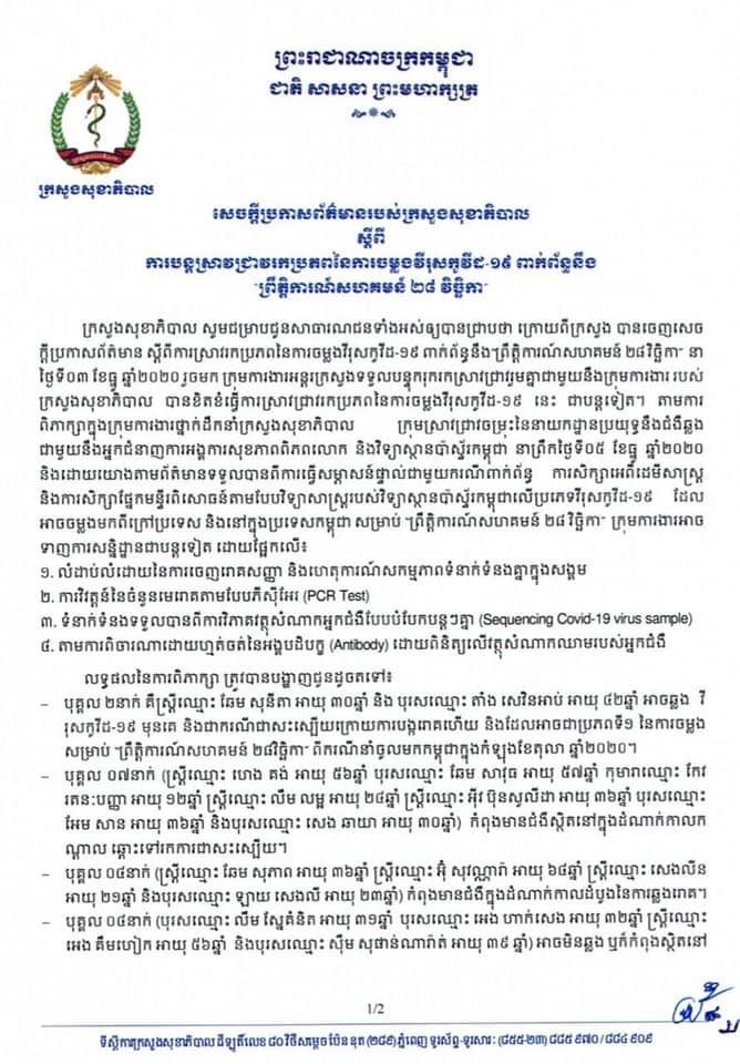 សូមអានសេចក្តីប្រកាសព័ត៌មានរបស់ក្រសួងសុខាភិបាល៖