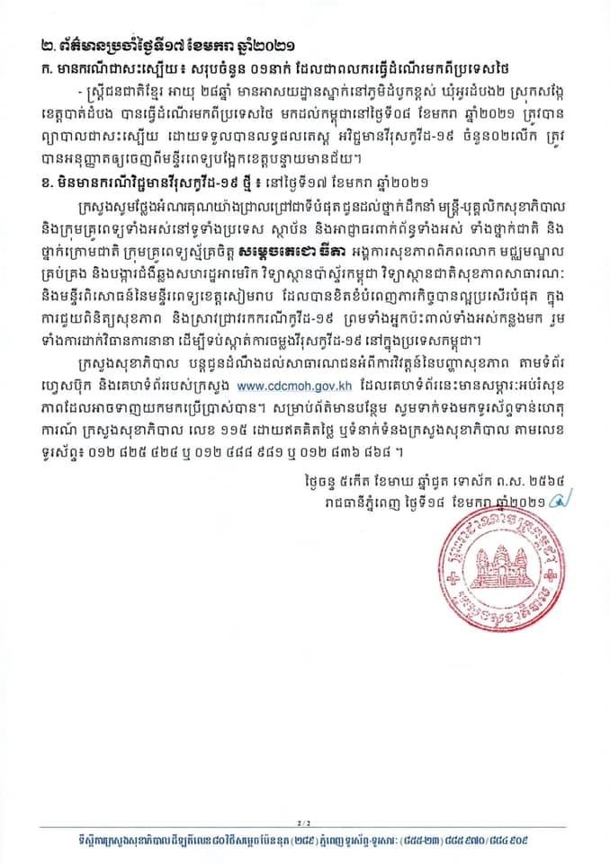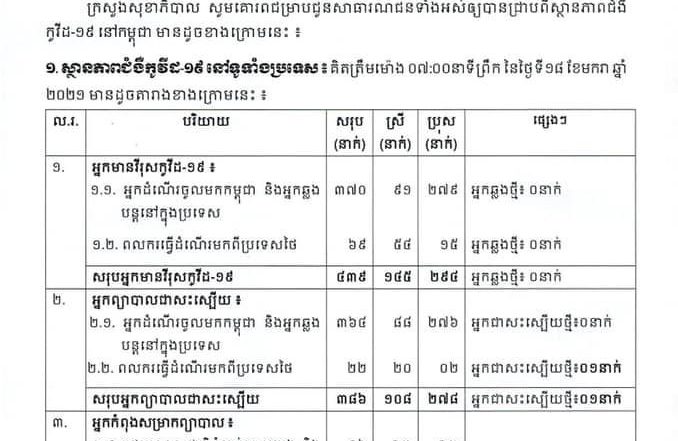គិតត្រឹមព្រឹក ថ្ងៃទី១៨ ខែមករា ឆ្នាំ២០២១
