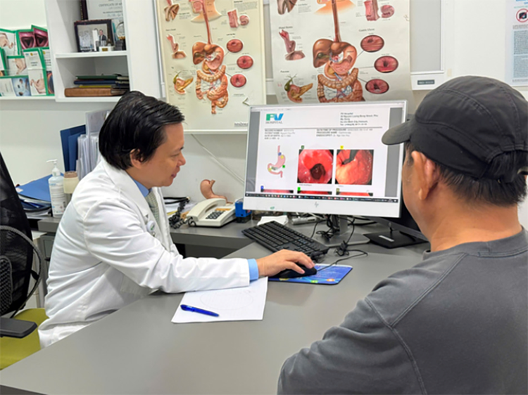 បន្ទាប់ពីពិនិត្យលោក P. និងធ្វើអង់ដូស្កុបរួច លោកវេជ្ជបណ្ឌិត ង៉ោ វ៉ាន់ហ៊ុយ អនុប្រធានផ្នែកជំងឺក្រពះ និងពោះវៀន នៃមន្ទីរពេទ្យ FV បានបញ្ជាក់ថា អ្នកជំងឺមានជម្ងឺច្រាលអាស៊ីតក្រពះ ជាមួយនឹងការបិទបើកកក្រពះមិនល្អ កម្រិត3-4 ។ ជាងនេះទៅទៀតគាត់ក៏ការរលាកនៃបំពង់អាហារដែលយើងហៅថាបារ៉ែតនៃបំពង់អាហារដោយសារតែការច្រាលអាស៊ីតច្រើនឆ្នាំ ដែលទាំងនេះជាស្ថានភាពមុនកើតមហារីកនៃបំពង់អាហារ។