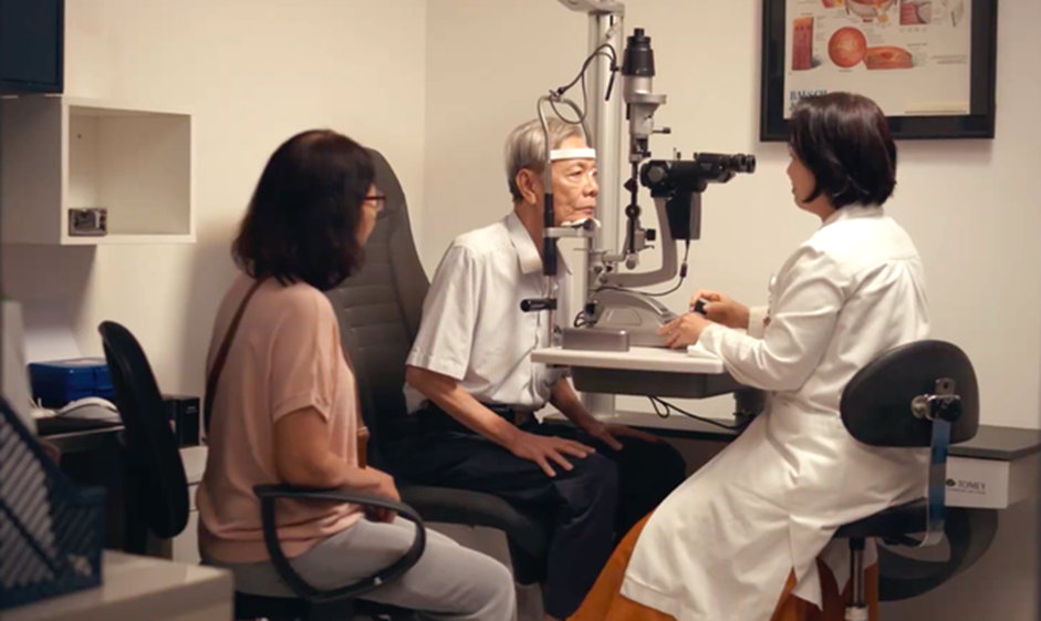 វេជ្ជបណ្ឌិត ង្វៀន ធីម៉ាយ ពិនិត្យស្ថានភាពភ្នែករបស់លោកគ្រូ ទ្វី