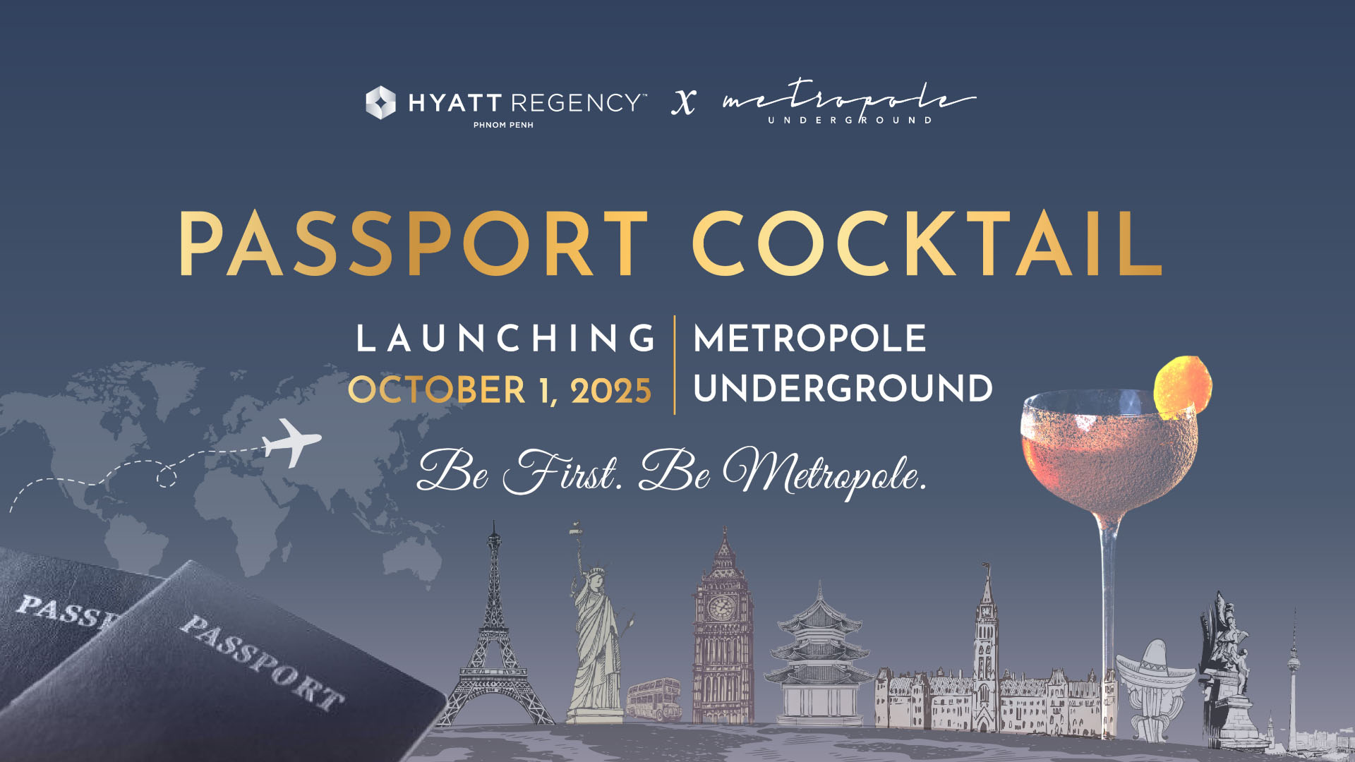 សណ្ឋាគារ ហៃយ៉ាត់ រីជិនស៊ី ភ្នំពេញ មានក្តីសោមនស្សរីករាយក្នុងការបង្ហាញម៉ឺនុយថ្មីដែលបំផុតគំនិតច្នៃប្រឌិតក្រោមប្រធានបទ “Passport Cocktail & Metro-Bar” នៅមេត្រូប៉ូល អាន់ដឺក្រោន ជាបារក្រោមដីដំបូងគេបង្អស់នៅទីក្រុងភ្នំពេញ ជាកន្លែងកម្សាន្តដែលមានរចនាប័ទ្មស្រដៀងទៅនឹងទីក្រុងប៉ារីសនាសម័យដើមទសវត្សរ៍ទី២០ ផ្ទៃខាងក្នុងមានភាពទាក់ទាញ ប្រណិត ទំនើប ទាន់សម័យ ល្អបំផុតសម្រាប់ការជួបជុំគ្នា។