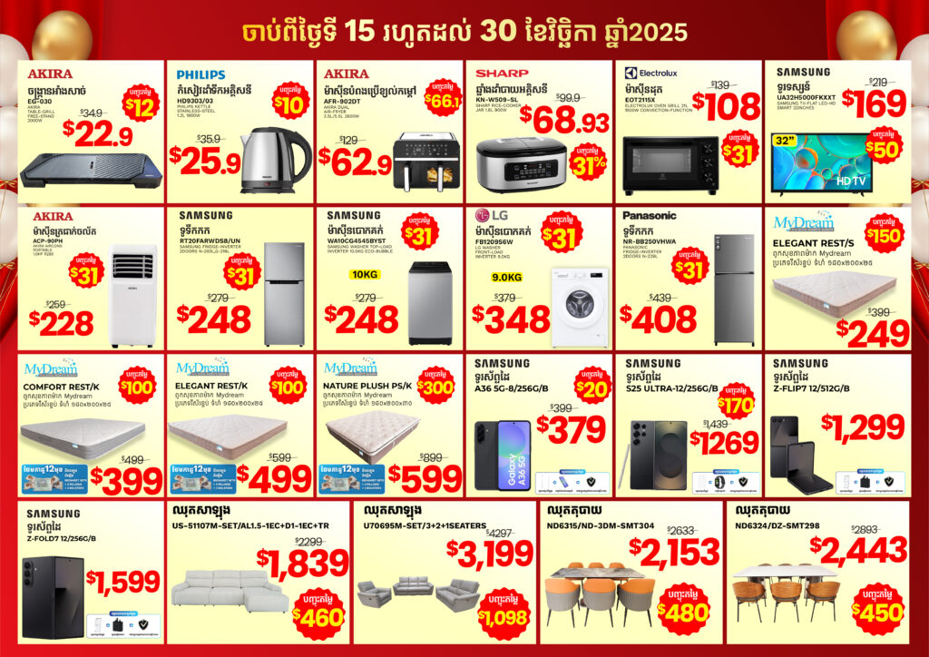 **ការផ្ដល់ជូនដ៏ពិសេសនេះចាប់ពីថ្ងៃទី15 រហូតដល់ថ្ងៃទី30 ខែវិច្ឆិកា ឆ្នាំ2025 នេះតែប៉ុណ្ណោះ។