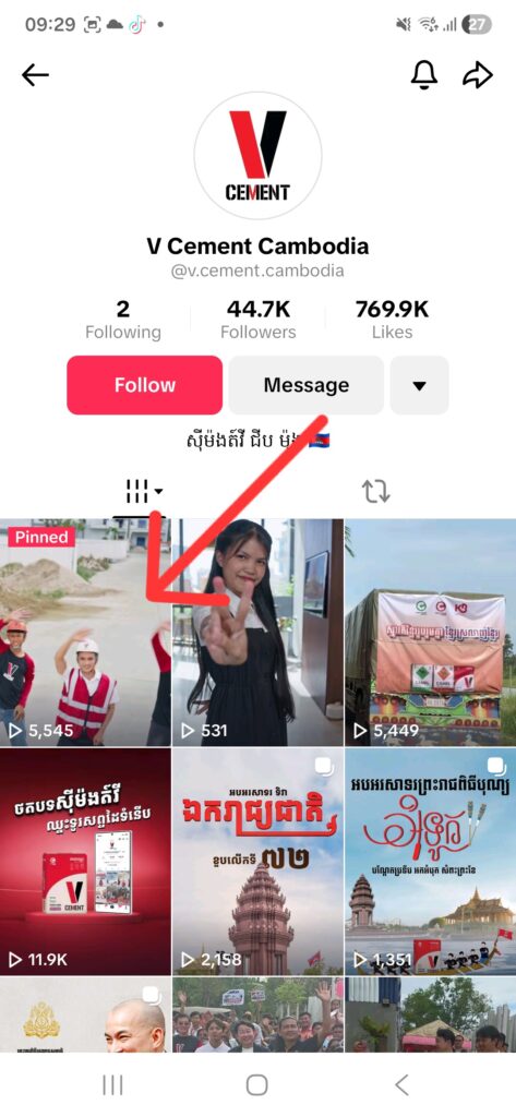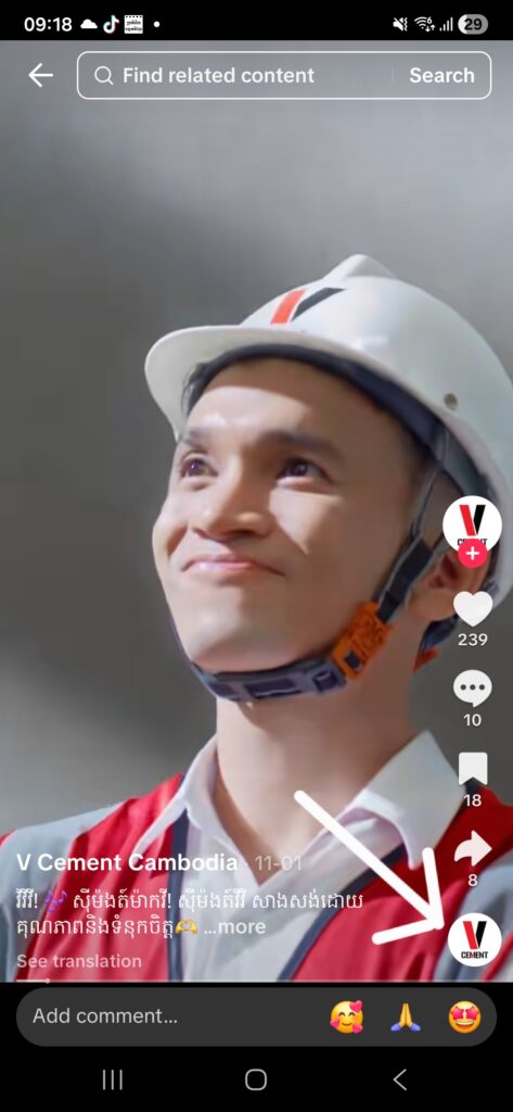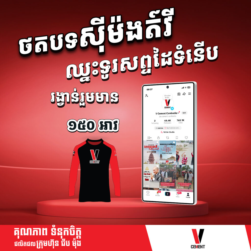 ជាដំបូងអ្នកចូលរួមសូមចូលទៅកាន់គណនីទីកតុក “ V Cement Cambodia” ឬ ចុចលើលីងខាងក្រោម: