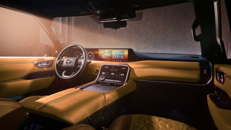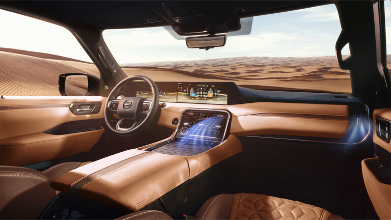 នៅខាងក្នុងរថយន្តនីសាន់ Patrol ស៊េរីថ្មី ផ្តល់ជូននូវកាប៊ីនដ៏ធំទូលាយ ពិសេសជាមួយនឹងកៅអីស្បែក ដំបូលបើកប្រើប្រាស់កញ្ចក់  Panoramic  និងលក្ខណៈពិសេសទំនើបៗដូចជាអេក្រង់ Monolith ទំហំ 28.6 អ៊ីញ ដែលមានអេក្រង់ភ្លោះទំហំ 14.3 អ៊ីង ដែលផ្តល់នូវទិដ្ឋភាពដ៏ទូលំទូលាយក្នុងការស្វែងរក ការកម្សាន្ត និងព័ត៌មានអំពីរថយន្ត។