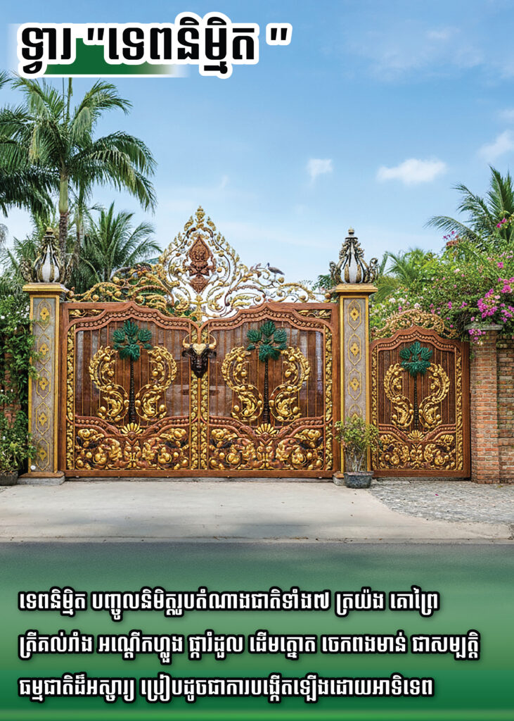 ភាពលម្អិត និងស៊ីជម្រៅនៃក្បាច់ រួមបញ្ចូលជាមួយនិមិត្តរូបតំណាងជាតិខ្មែរទាំង៧ ធ្វើឲ្យទ្វាររបងនេះមានលក្ខណៈពិសេស បែបថ្លៃថ្នូរខ្ពស់ខ្ពស់ ស័ក្តិសមបំផុតសម្រាប់គេហដ្ឋាន រឺ ភូមគ្រឹះដែលប្រណិត។