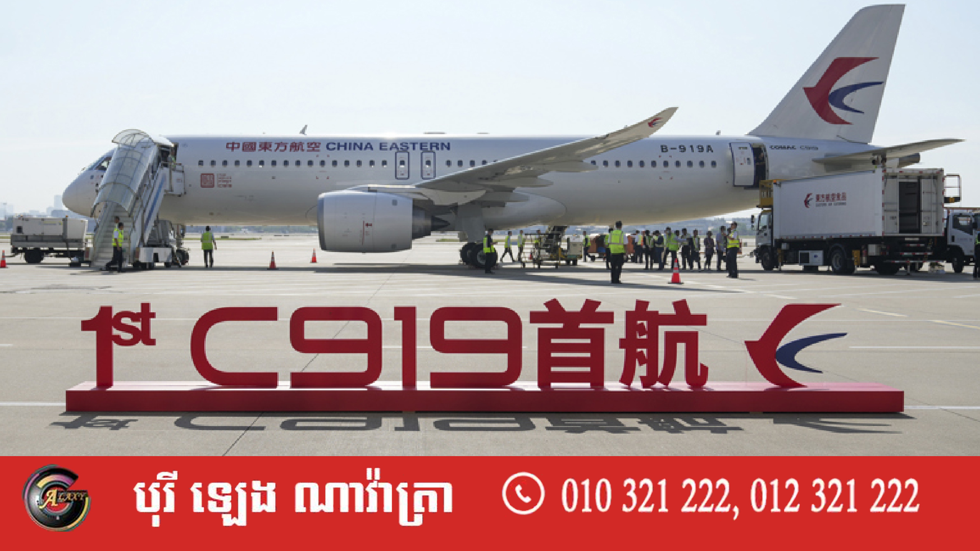 យន្តហោះដឹកអ្នកដំណើរផលិតនៅក្នុងប្រទេសចិនដំបូងបង្អស់ ត្រូវបានដាក់ឱ្យហោះហើរជាលើកដំបូង កាលពីថ្ងៃអាទិត្យកន្លងទៅ ខណ:ប្រទេសនៅតំបន់អាស៊ីមួយនេះ កំពុងសម្លឹងរកមើលឱកាស នៅក្នុងការចូលរួមប្រកួតប្រជែងជាមួយក្រុមហ៊ុនផលិតយន្តហោះខ្នាតយក្សផ្សេងទៀត ដូចជា Boeing និង Airbus ជាដើម ។