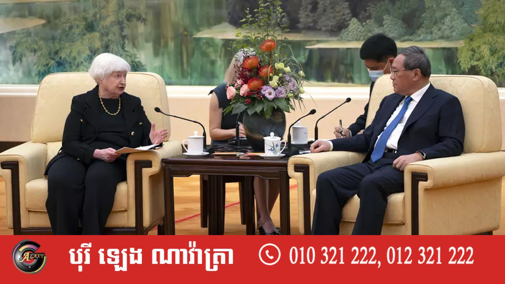 រដ្ឋមន្ត្រីក្រសួងរតនាគារអាមេរិក លោកស្រី Janet Yellen បានជួបពិភាក្សាការងារជាមួយនាយករដ្ឋមន្ត្រីចិន លោក Li Qiang កាលពីរសៀលថ្ងៃសុក្រ ដោយជជែកគ្នាពីស្ថានភាពទំនាក់ទំនងសេដ្ឋកិច្ចរវាងមហាអំណាចទាំង ២។