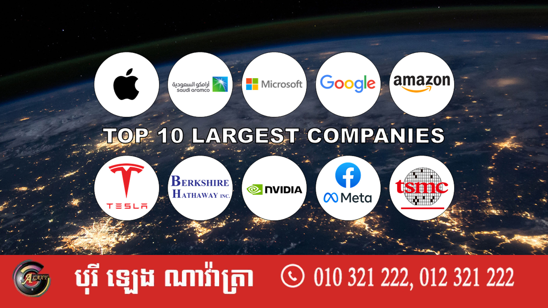 ប្រភពដដែលក៏បានបង្ហាញក្រុមហ៊ុនទាំង ១០ ដែលមានតម្លៃមូលធនទីផ្សារច្រើនបំផុតលើលោកផងដែរ ដោយក្នុងនោះមានក្រុមហ៊ុនអាមេរិករហូតដល់ទៅ ៨ ឯណោះ។