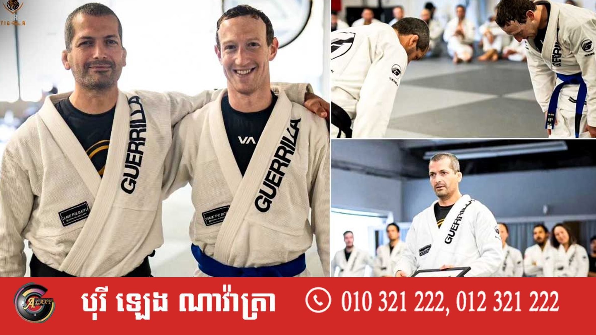 មហាសេដ្ឋីអាមេរិក Mark Zuckerberg កំពុងវក់វីជាមួយនឹងការហ្វឹកហាត់ក្បាច់គុនជីជីតស៊ូ ស្របពេលចចាមអារ៉ាមជុំវិញការវាយគ្នាក្នុងទ្រុងរវាងលោក និងប្រធានក្រុមហ៊ុន Tesla មហាសេដ្ឋី Elon Musk នៅមិនទាន់សាបរលាប។