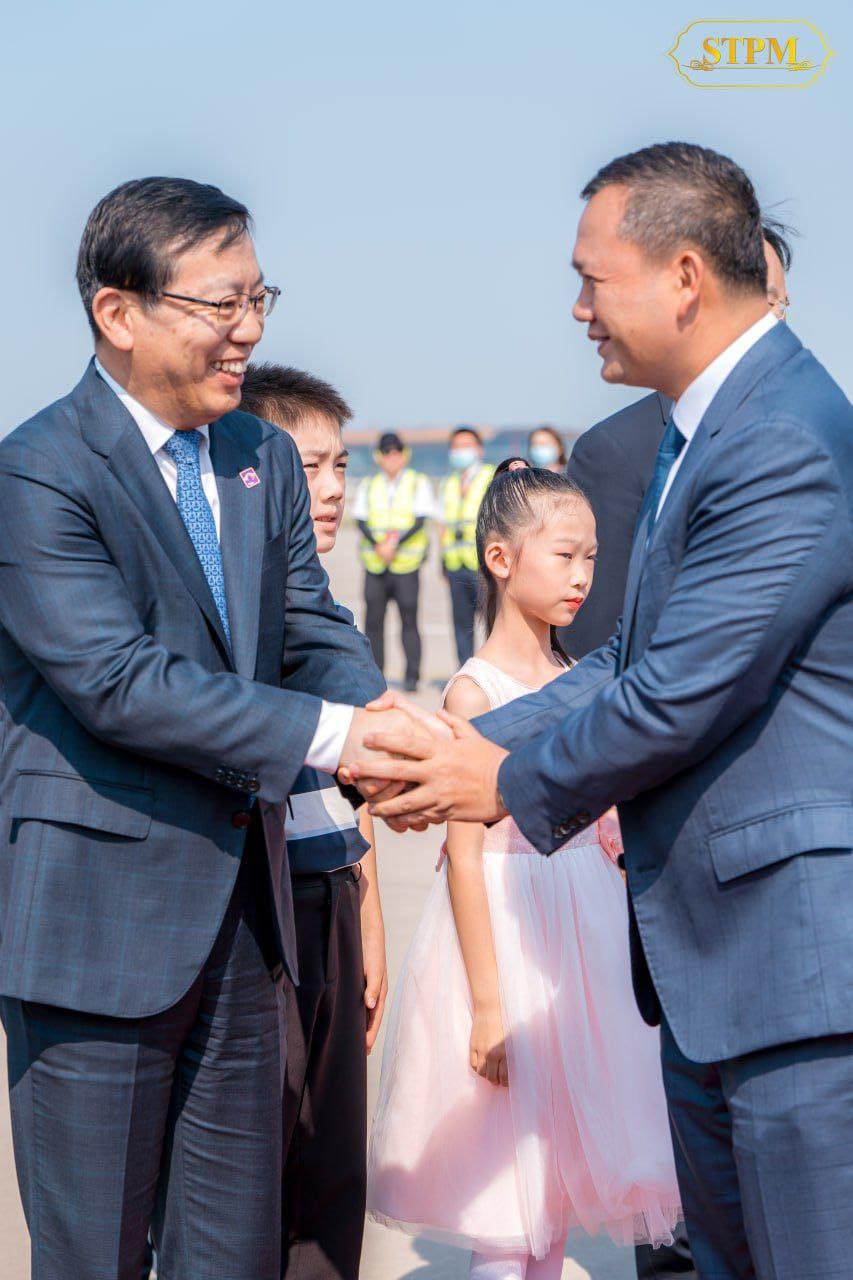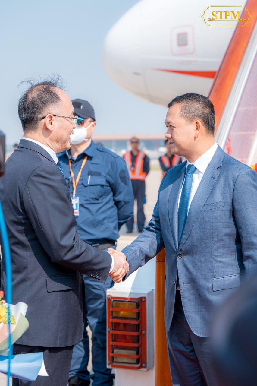 សម្រាប់ការមកដល់ទឹកដីនៃប្រទេសចិននេះ សង្កេតឃើញមានមន្ត្រីជាន់ខ្ពស់ចិនចំនួន ២រូប ទទួលបដិសណ្ឋារកិច្ច និងស្វាគមន៍យ៉ាងកក់ក្តៅចំពោះសម្ដេចមហាបវរធិបតី ហ៊ុន ម៉ាណែត និងគណៈប្រតិភូ គឺលោក ណុង រ៉ុង អនុរដ្ឋមន្ត្រីការបរទេសចិន និងឯកអគ្គរដ្ឋទូតចិនប្រចាំកម្ពុជា លោក វ៉ាង វិនធាន។