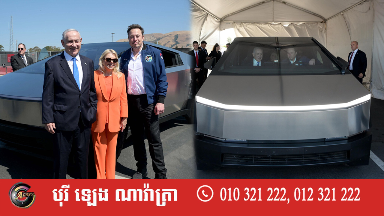 មហាសេដ្ឋី Elon Musk បានយករថយន្ត Tesla Cybertruck មកដឹកនាយករដ្ឋមន្ត្រីអ៊ីស្រាអែល Benjamin Netanyahu និងភរិយារបស់លោក អ្នកស្រី Sara ជិះបំពេញទស្សនកិច្ចនៅរោងចក្រ Tesla Motors ក្នុងរដ្ឋ California។