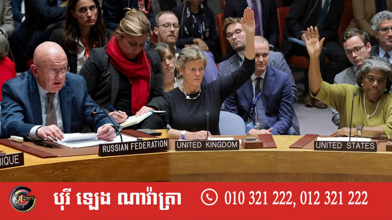 នាថ្ងៃទី១៧ ខែតុលានេះ ក្រុមប្រឹក្សាសន្តិសុខអង្គការសហប្រជាជាតិ បានច្រានចោលសំណើរបស់រុស្ស៊ី ក្នុងការដោះស្រាយវិបត្តិសង្គ្រាមរវាងប្រទេសអ៊ីស្រាអែល និងក្រុមសកម្មប្រយុទ្ធហាម៉ាស របស់ប៉ាឡេស្ទីន ដែលកំពុងវឹកវរខ្លាំងនាពេលបច្ចុប្បន្ន។