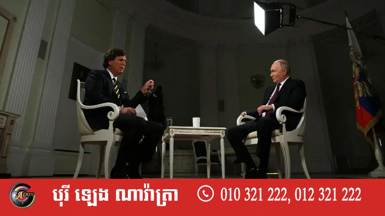 សូមជម្រាបដែរថា នៅក្នុងកិច្ចសម្ភាសន៍រយៈពេលជាង ២ម៉ោង ជាមួយអ្នកសារព័ត៌មាន Tucker Carlson ធ្វើឡើងនៅទីក្រុងមូស្គូនេះ ក៏បានបង្ហាញភាពវិជ្ជមាន នៃការដោះលែងអ្នកសារព័ត៌មានជនជាតិអាមេរិក Evan Gershkovich របស់ស្ថាប័ន Wall Street Journal ដែលរុស្ស៊ីបានបង្ខាំងខ្លួនរយៈពេលជិតមួយឆ្នាំ និងកំពុងរង់ចាំការកាត់ក្ដី ជុំវិញការចោទប្រកាន់ទាក់ទងនឹងបទចារកម្ម៕